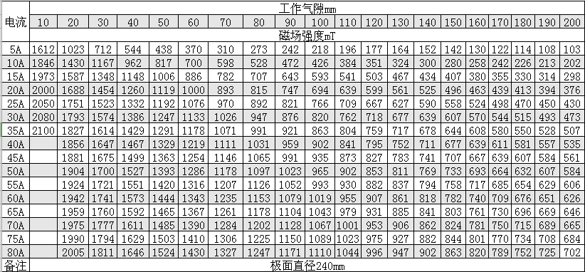 磁感應強度:8000 Oe(氣隙150mm時)